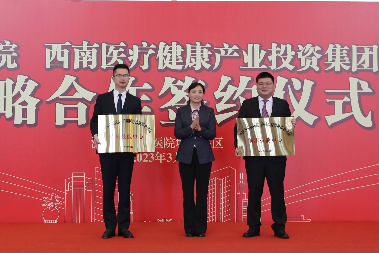 儀式上,雙方簽訂了戰略合作協議,對合作的瀘州市中醫醫院·西南醫投集團醫療護理實訓基地、體檢中心專科聯盟,瀘州市中醫醫院·瀘州醫療器械職業學院臨床技能中心進行了授牌。