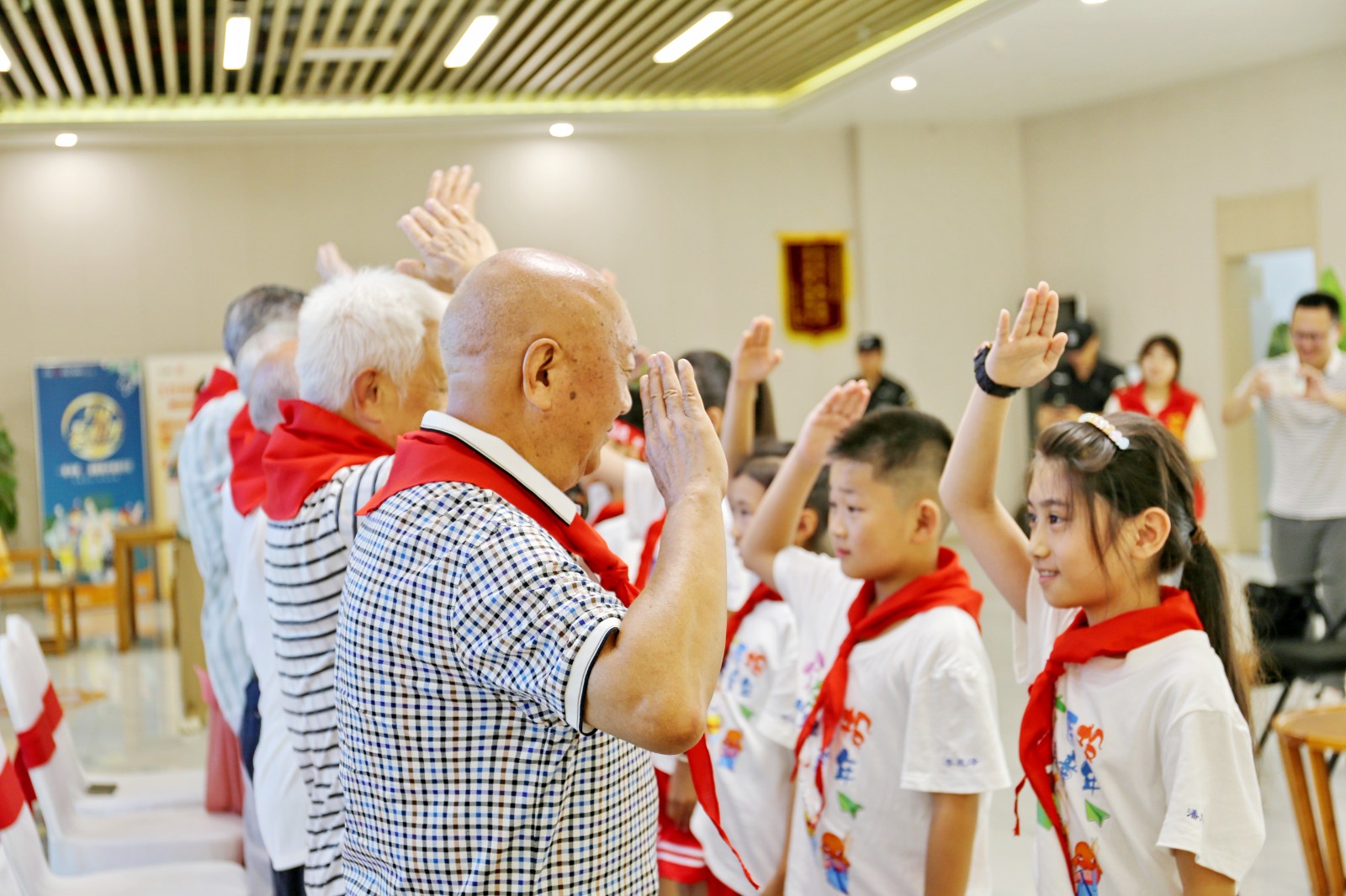 活動(dòng)現(xiàn)場(chǎng),7名少先隊(duì)員向7名80歲以上的老黨員莊嚴(yán)戴上鮮艷的紅領(lǐng)巾,并隆重的敬上少先隊(duì)隊(duì)禮。老黨員們喜笑顏開(kāi)、童心未泯,也向少先隊(duì)員們回敬隊(duì)禮。簡(jiǎn)潔而隆重的一個(gè)敬禮,真切傳遞著“一老一小”的深情與厚愛(ài)。假期托管服務(wù)是西南醫(yī)投集團(tuán)黨委全面貫徹黨的教育方針,落實(shí)立德樹(shù)人的根本任務(wù)、推動(dòng)“四下基層”、“我為群眾辦實(shí)事”、關(guān)心下一代工作等落地見(jiàn)效的有力舉措。西南醫(yī)投集團(tuán)直屬黨支部“紅心護(hù)苗”志愿服務(wù)隊(duì)聯(lián)合春江酒城嘉苑養(yǎng)老社區(qū)離退休黨支部“銀發(fā)先鋒”志愿服務(wù)隊(duì),充分發(fā)揮入住園區(qū)的“五老”(老干部、老戰(zhàn)士、老專家、老教師、老模范)優(yōu)勢(shì),將為托管孩子們提供書(shū)法、繪畫(huà)、傳唱紅色經(jīng)典歌曲、講解優(yōu)秀革命故事、傳承優(yōu)良家風(fēng)家訓(xùn)等課程,引領(lǐng)孩子們知史愛(ài)黨、名禮愛(ài)國(guó),學(xué)習(xí)感悟百年黨史蘊(yùn)含的紅色文化,汲取紅色力量。